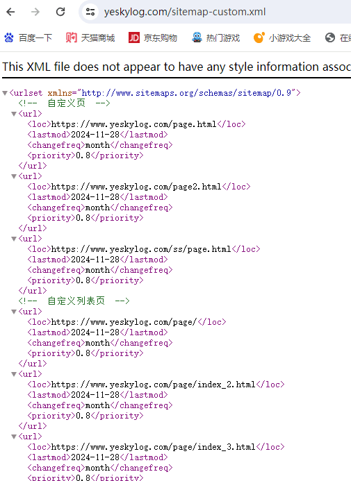 你的域名/sitemap-custom.xml  自定义页、自定义列表页sitemap地图