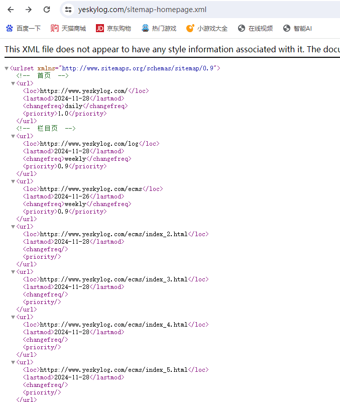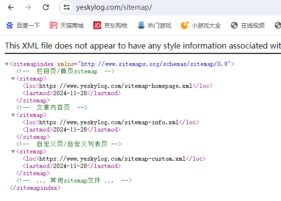 你的域名/sitemap.xml  索引型sitemap地图