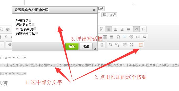 在后台,添加文章的时候,可以选取一段或者全部内容,设定阅读权限。