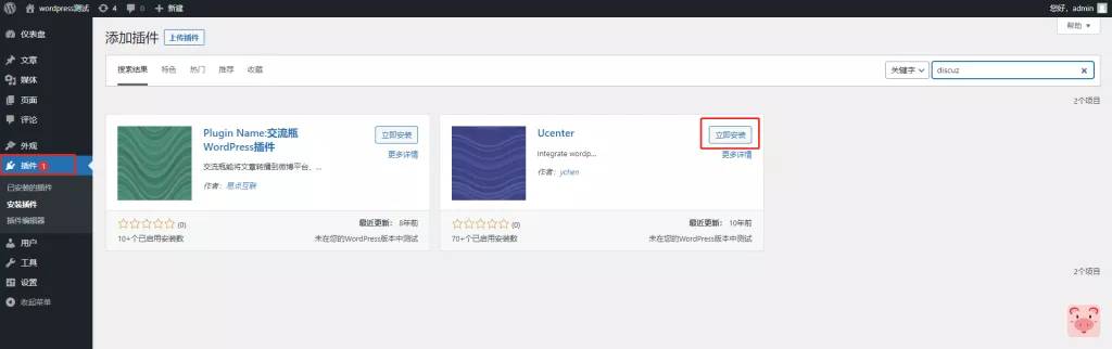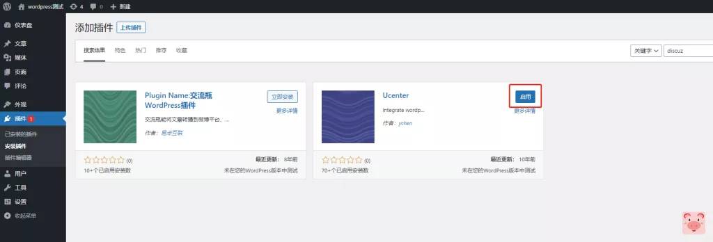 选择 插件>搜索Ucenter>安装Ucenter插件