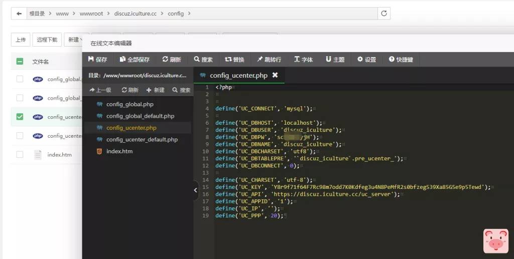 可以参考discuz网站config目录下的config_ucenter.php文件,对照字段填入即可,注意UC_APPID这里要填2(这个是因为我们在Discuz新建的应用ID编号是2,如果站点多,您需要按照Discuz Ucenter里的编号填写)