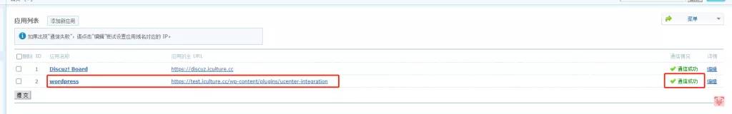 配置成功之后,你可以在Discuz Ucenter中看到通信成功的的绿色字样
