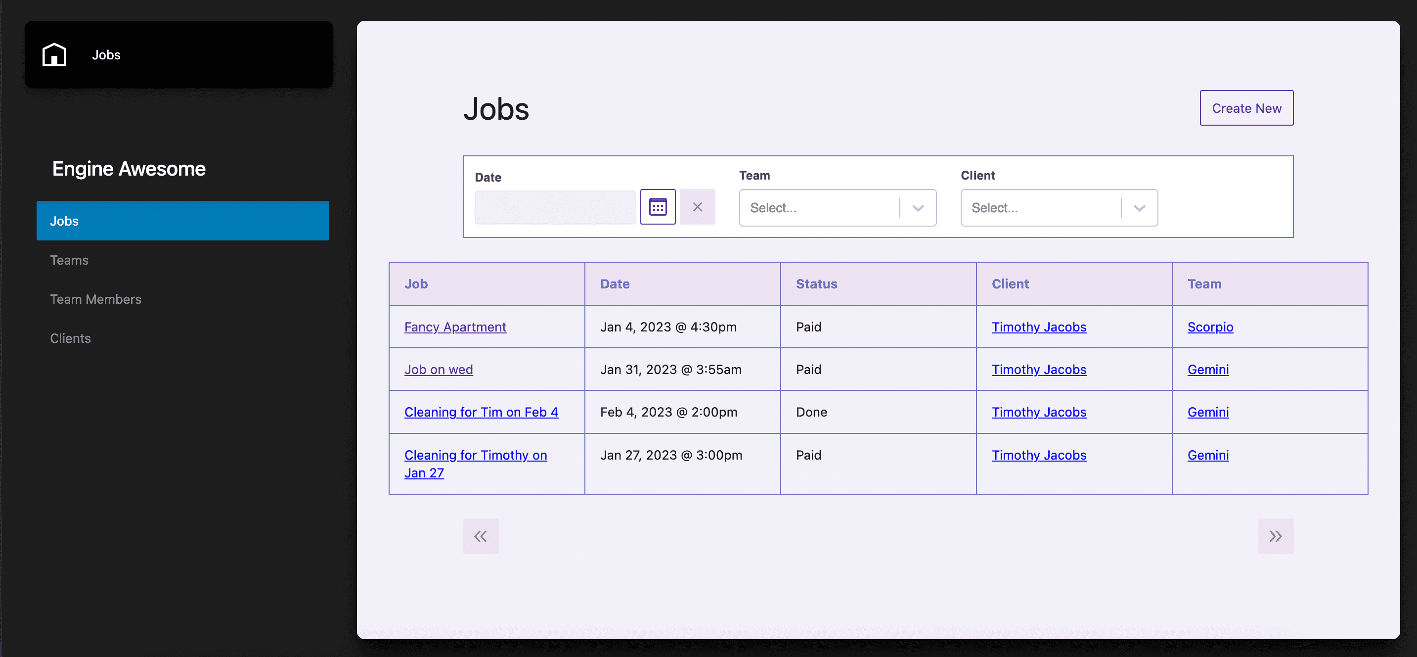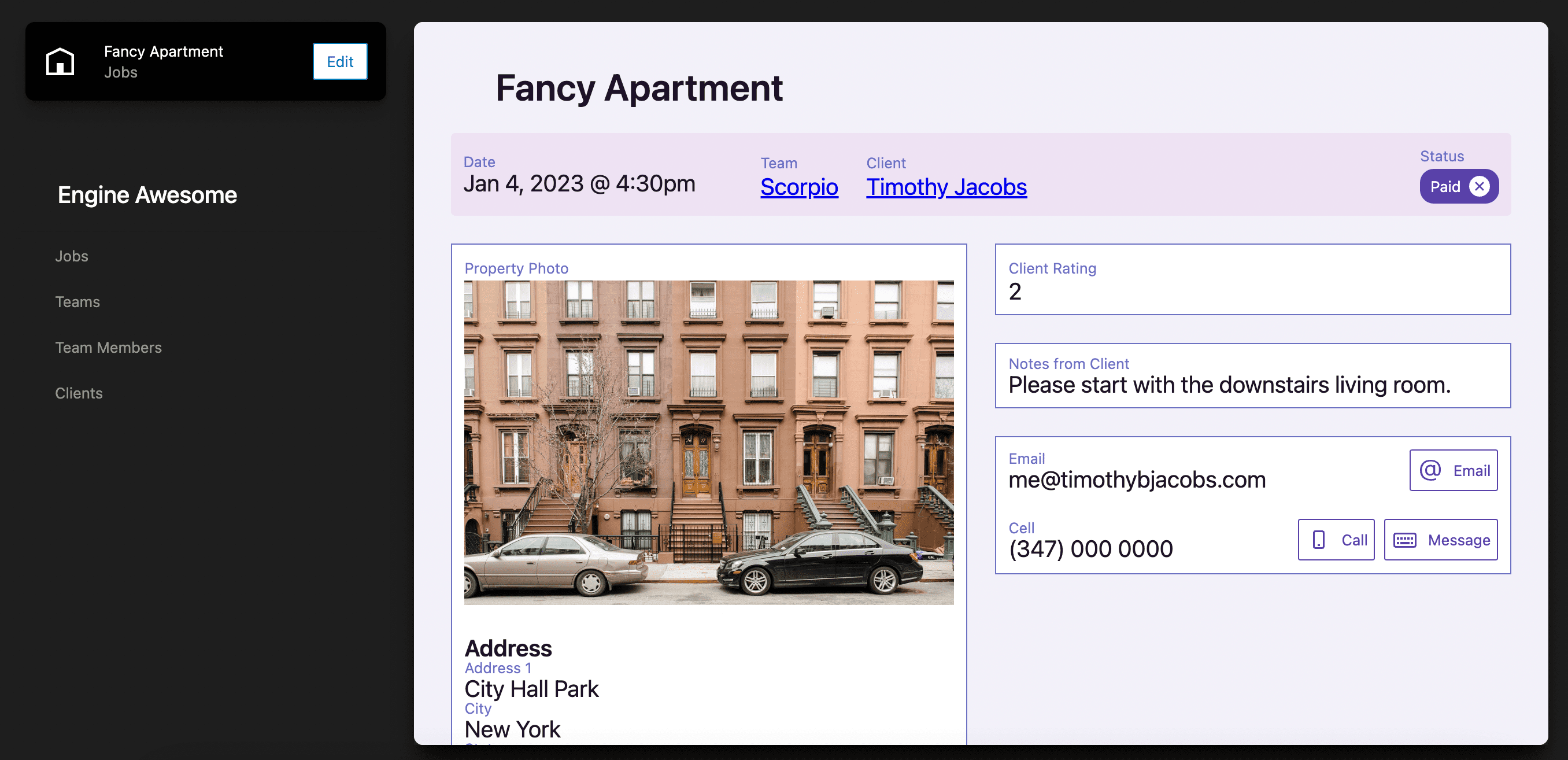 Engine Awesome 是一个无代码应用程序构建器,用户可以在其中创建对象类型(类似于自定义帖子类型)来存储和组织他们的数据。以下是清洁作业演示应用程序仪表板中的示例。