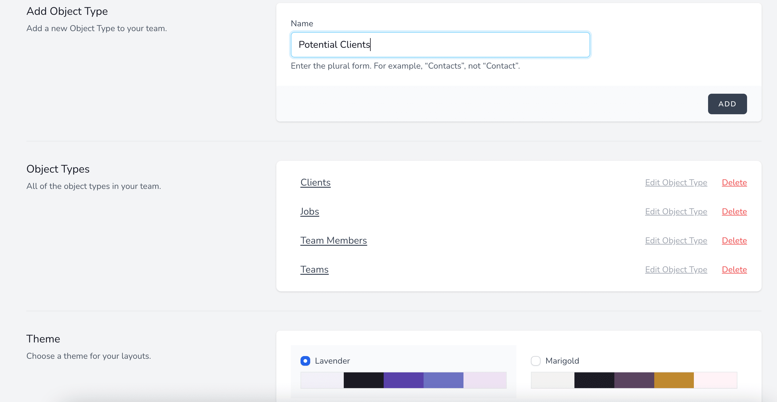 在应用程序构建方面,用户可以轻松地添加、编辑或删除对象类型,并为布局添加主题。