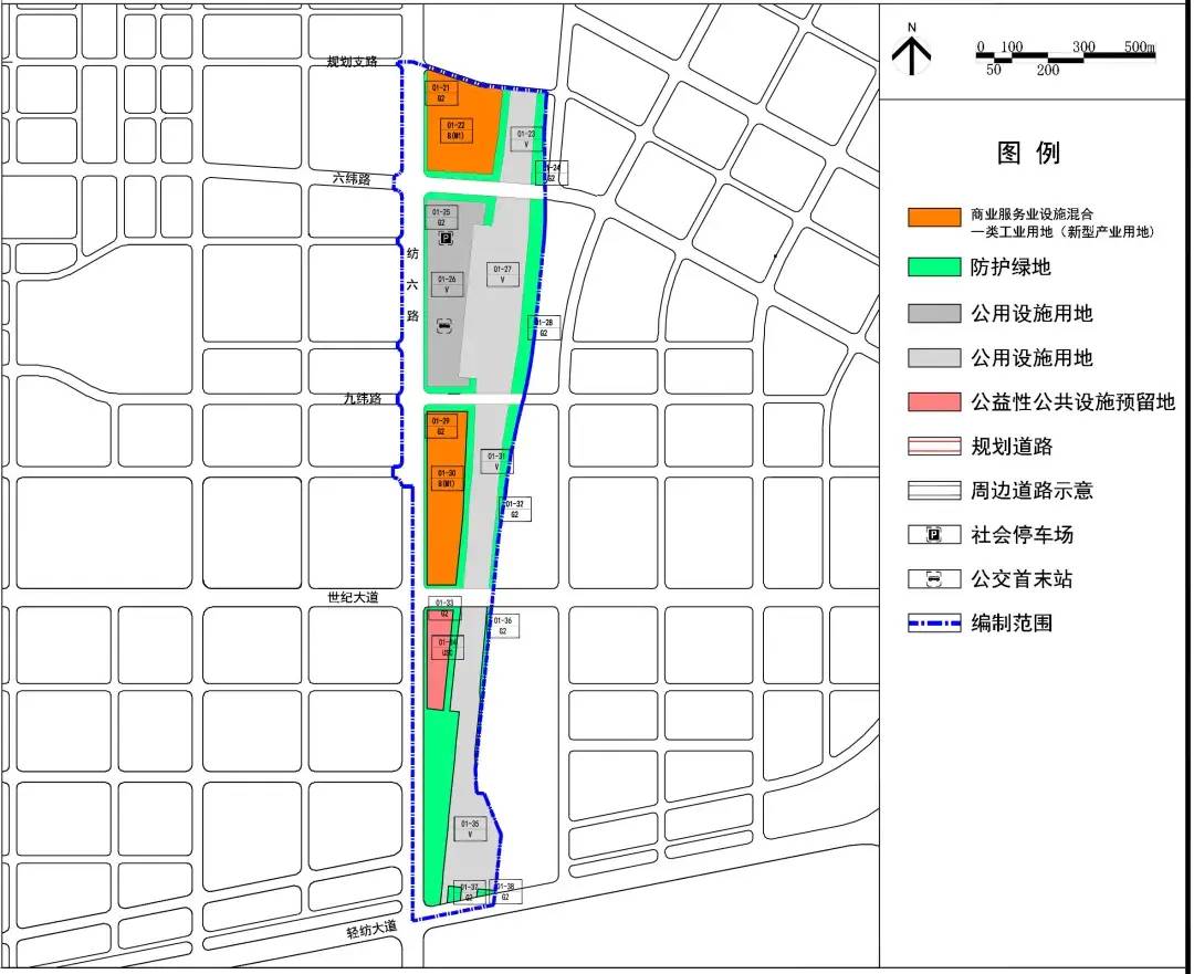 结合区域规划和现状建设情况确定编制范围内规划道路线位和红线宽度,确定公用设施用地、商业服务业设施用地和新型产业用地的混合用地、公益性公共设施预留地的位置、范围和相关控制指标等,根据公用设施防护要求和市政配套需求等,沿规划公用设施和城市道路等布局一定宽度防护绿地。