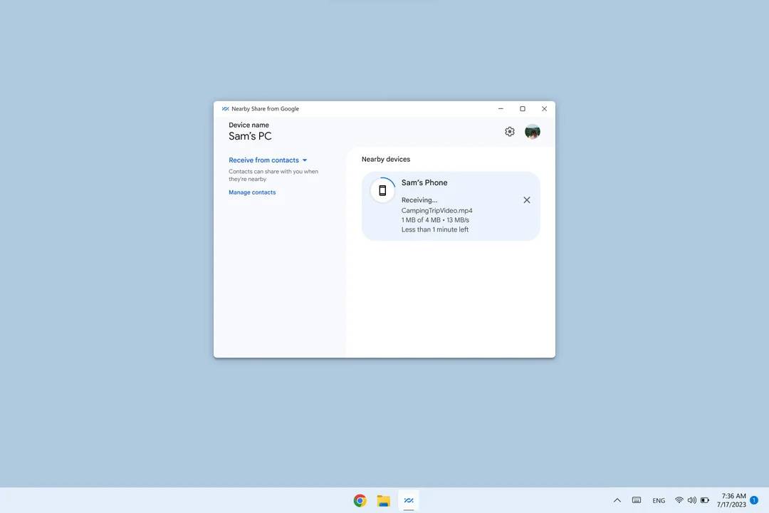 7 月 20 日消息,谷歌今天发布新闻稿,宣布在 Win10、Win11 平台推出桌面版“附近分享”(Nearby Share)功能,方便用户快速在安卓设备和 PC 之间传输照片、文件和视频。