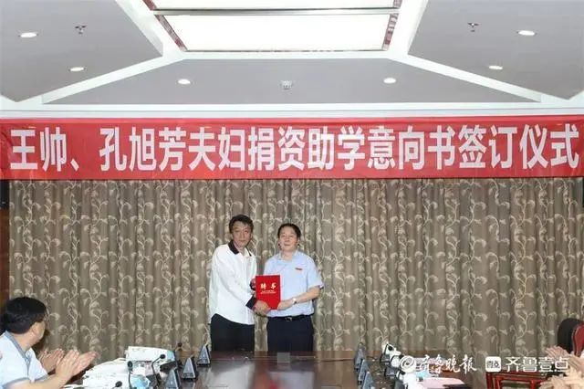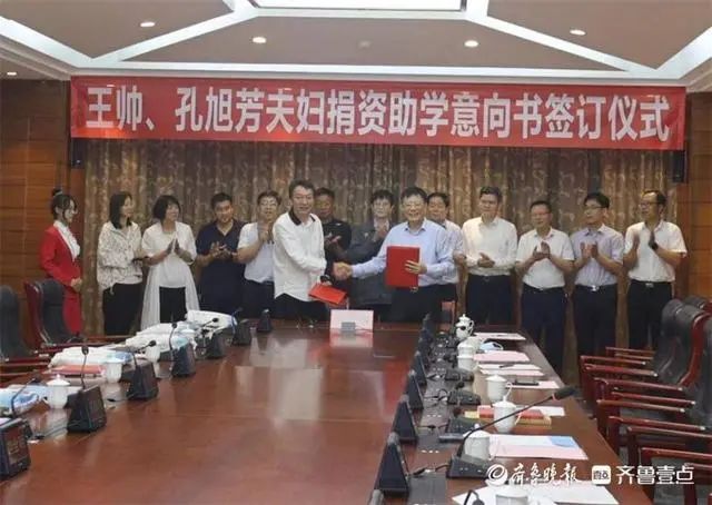 鲁东大学举行“王帅、孔旭芳夫妇捐资助学意向书签订仪式”。著名文学评论家、原山东师范大学教授宋遂良,王帅先生亲属、同事,鲁东大学校领导及相关职能部门负责人参加捐赠仪式。
