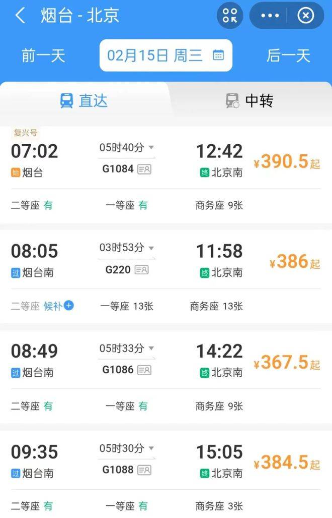 现在从烟台到上海直达时间在7个小时左右;到北京4、5个小时。