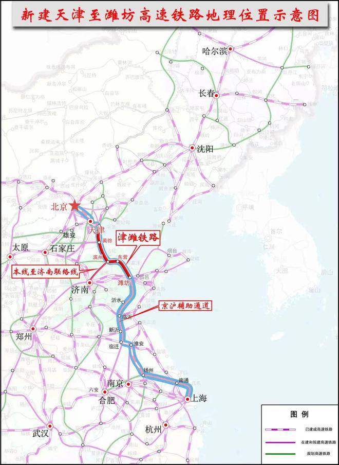 烟台至上海可经由青荣城际、潍莱铁路接入京沪二通道快速南下;
