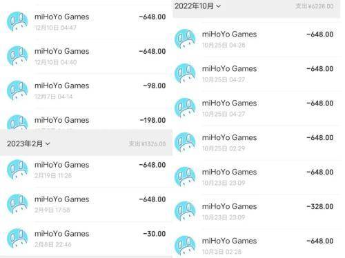 “2023年3月在一次不经意的购物时,无意间发现我家小孩对米哈游《原神》的连续充值转账记录。从2022年5月开始,孩子在这款游戏上共充值超过两万元。根据转账记录,2022年11月23点39分左右,仅3分钟内就充值5次648元,这明显是未成年人对金钱没有概念进行的充值行为。”李源向记者讲述,据她观察,《原神》游戏登陆过程中没有人脸识别认证,充值过程更是没有身份甄别等防范未成年人的措施。