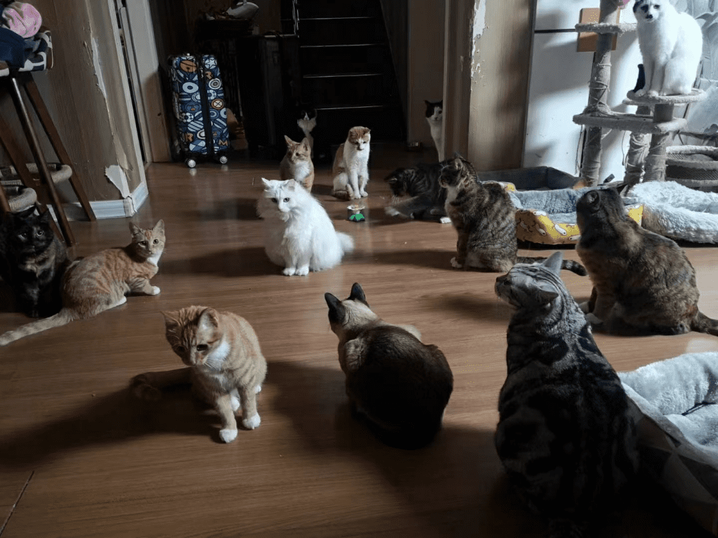生活在天津的姜兴美则爱猫如痴。姜兴美的家里有33只猫,还有一条哈士奇,都是她的“心头肉”,家中有数个房间都让给它们住。姜兴美称,为了给流浪猫咪治病,截至现在她已花费上百万元。如今,女儿在她的影响下,也加入救助小动物的行列。