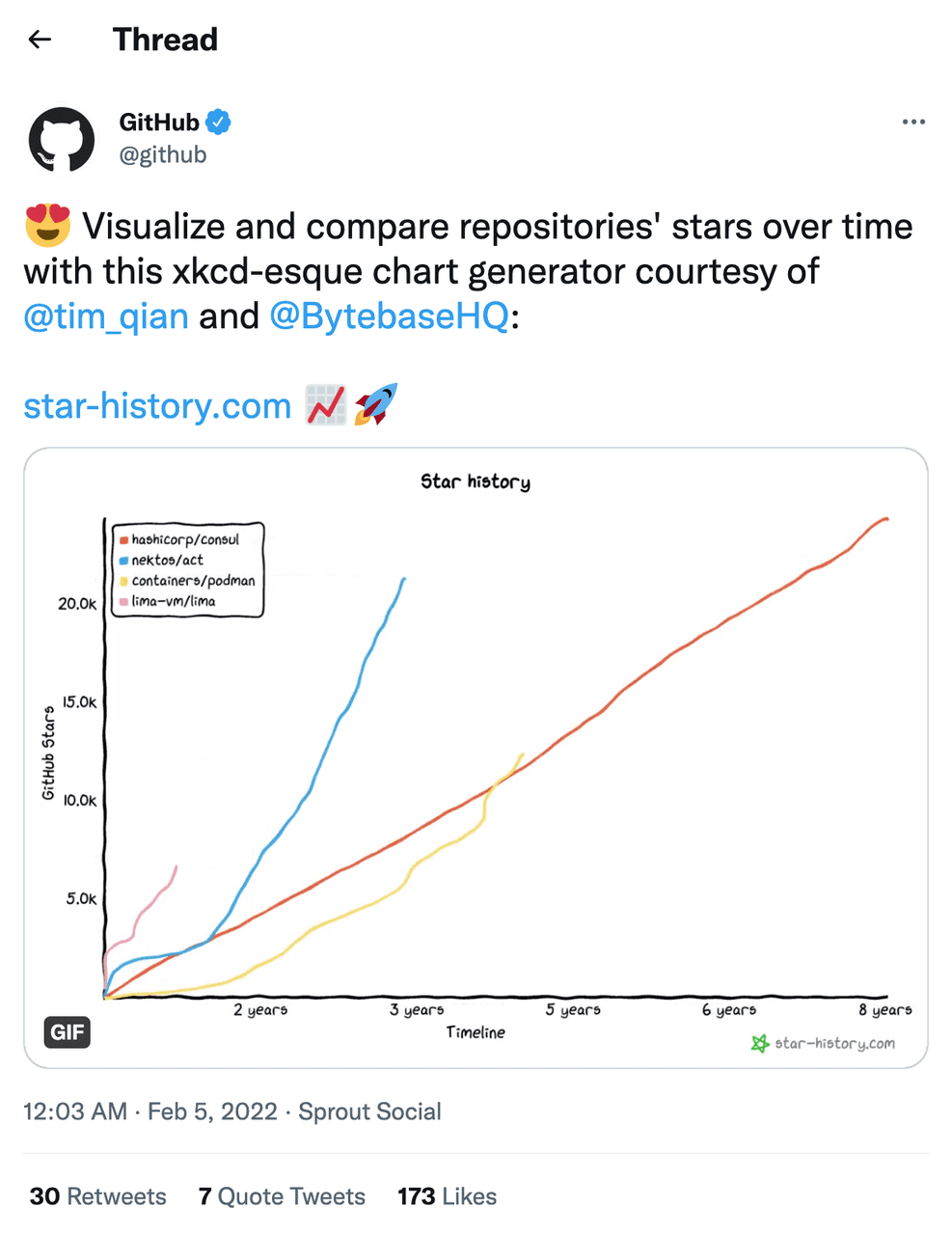 与此同时,我们也维护着 star-history.com ,业界查看 GitHub star 的默认网站。